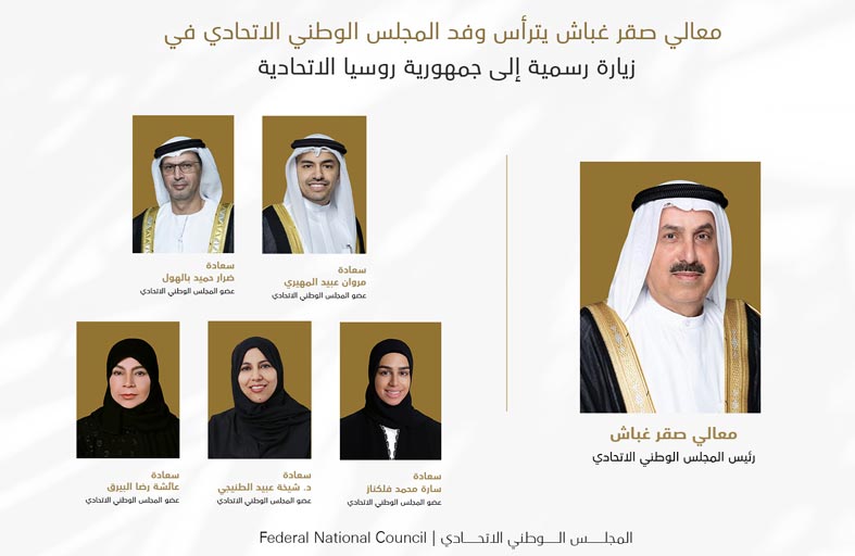 صقر غباش يترأس وفد المجلس الوطني الاتحادي في زيارة رسمية إلى روسيا الاتحادية