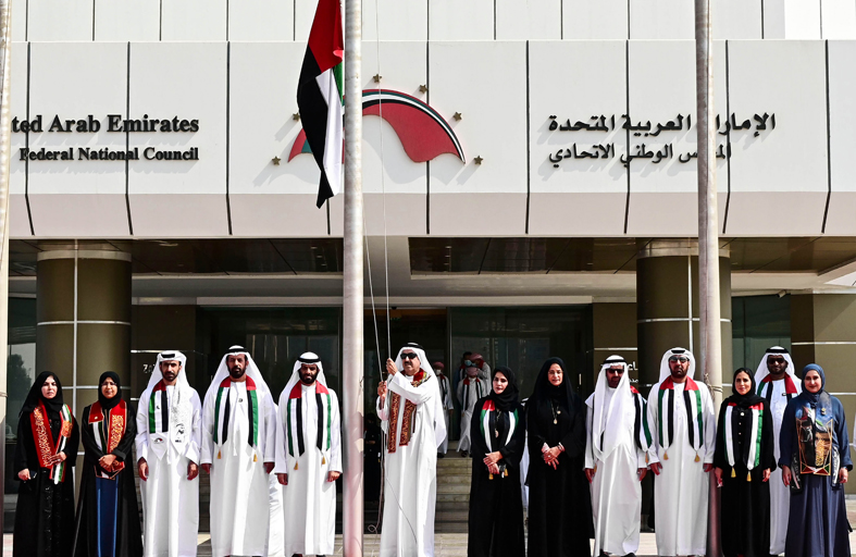 وقام معالي صقر غباش رئيس المجلس الوطني الاتحادي برفع علم الدولة على سارية المقر الرئيسي للمجلس الوطني الاتحادي في أبوظبي وذلك بالتزامن مع رفعه في مقر الأمانة العامة بدبي وسط عزف السلام الوطني في احتفال جرى بحضور سعادة أعضاء المجلس الوطني الاتحادي، وسعادة الدكتور عمر النعيمي الأمين العام للمجلس، والأمناء العامين المساعدين ومدراء الإدارات وموظفي الأمانة العامة احتفالا بمناسبة "يوم العلم" للتعبير عن أسمى معاني الولاء والانتماء إلى الوطن وقيادته الرشيدة.