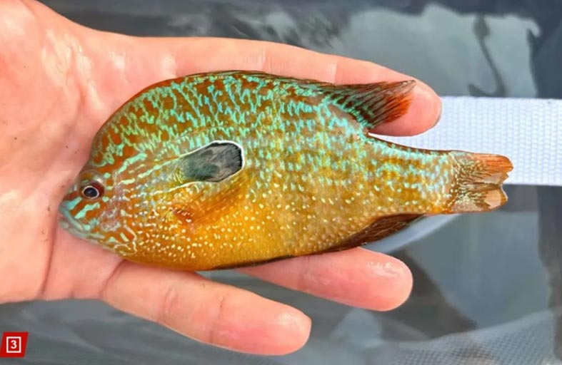 وقال باور: " أتلقى تقارير كل عام تقريباً عن أسماك الزينة التي تم إطلاقها بشكل غير قانوني في مياهنا ثم تم العثور عليها ميتة أو حتى تم اصطيادها من قبل الصيادين، لكن في الأسبوع الماضي، تلقيت مكالمة من صديقي سكوت بوس، وهو صياد شغوف، لقد اصطاد سمكة "شمس طويلة الأذن" يبلغ طولها 5¼ بوصة ووزنها 2 أونصة". وأضيف باور "حين نظرت للسمكة التي جلبها لي، عرفت أنها لم توثق رسمياً هنا من قبل". وتم بالفعل توثيق السمكة البرتقالية ذات العلامات الفيروزية، رسمياً، والاعتراف بها كأول رقم قياسي للولاية لهذا النوع في نبراسكا.