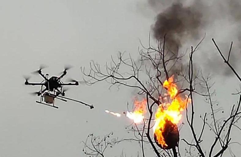 شهدت منطقة في وسط الصين مشهدا مثيرا مؤخرا، حين تم تحويل طائرة دون طيار "درون" إلى قاذفة لهب طائرة في حملة نارية للقضاء على أكثر من 100 عش للدبابير.