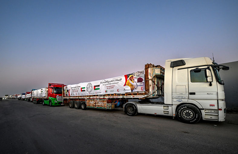 ضمن «الفارس الشهم 3».. الإمارات تسير أكثر من 250 قافلة تحمل 1.6 مليون طرد مساعدات لغزة