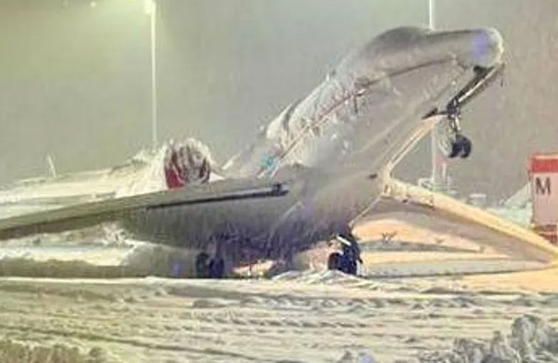 وتظهر الطائرة في مقطع الفيديو وقد علقت بالثلوج و"التصقت بالأرض"، بينما كان أنفها مرفوعا للأعلى.
