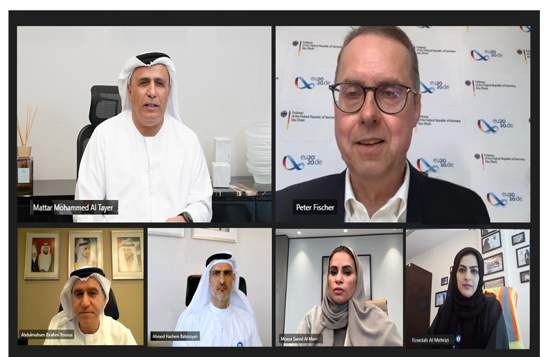 بحث معالي مطر محمد الطاير المدير العام ورئيس مجلس المديرين في هيئة الطرق والمواصلات خلال اجتماع عبر تقنية الاتصال "عن بعد" مع سعادة إرنست بيتر فيشر سفير جمهورية ألمانيا الاتحادية لدى الدولة سبل تعزيز التعاون وتبادل الخبرات بين الهيئة ونظيرتها في ألمانيا في مجال المواصلات وأنظمة التنقل.