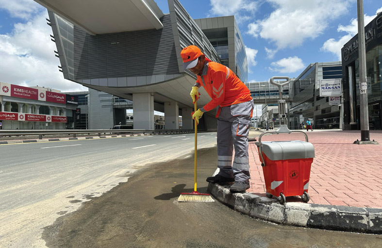 من جانبه أكد سعادة داوود الهاجري مدير عام بلدية دبي، أن فرق الطوارئ الميدانية في بلدية دبي مستمرة في التعامل مع تبعات الحالة الجوية الاستثنائية التي مرت بها إمارة دبي وفق خطط مكثفة تغطي كافة المناطق، وبالتنسيق الكامل مع الشركاء الاستراتيجيين في الإمارة، وذلك بهدف معالجة تبعاتها التي تسببت بتجمعات مياه الأمطار، وانسدادات في شبكات المصارف، إضافةً إلى تكثيف العمل لإزالة المخلفات المتراكمة وتنفيذ أعمال النظافة العامة، والتعامل معها بسرعة وكفاءة تضمن أعلى درجات الأمان والسلامة والصحة العامة للسكان والمقيمين في إمارة دبي.وقال الهاجري: وضَعنا في بلدية دبي كافة الإمكانات بنسبة 100% في كامل الاستعداد منذ بداية الحالة الجوية، حيث شملت منظومة متكاملة الجاهزية من فرق عمل وكوادر بشرية متخصصة وعالية الخبرة والكفاءة، مزودةً بأفضل التجهيزات والمعدات اللوجستية التخصصية اللازمة لإنجاز كافة الأعمال والخدمات والتعامل مع البلاغات الطارئة بالأسلوب الأمثل.