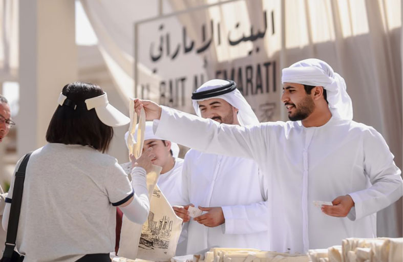 طلبة الإمارات يعرّفون زوار «البيت الإماراتي» بتراث الدولة باللغة الصينية