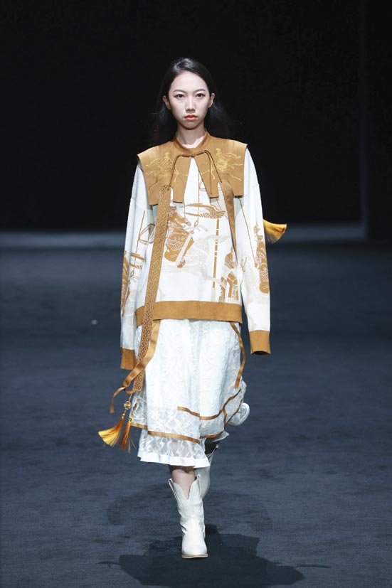 عارضة أزياء تقدم إبداعًا من مجموعة إنها حقيقية للمصمم تشيو وينينغ خلال أسبوع الموضة الصيني في بكين. ا ف ب