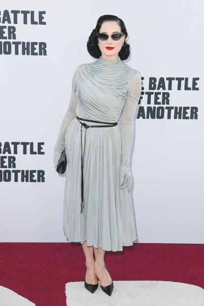 عارضة الأزياء والممثلة الأمريكية ديتا فون تيسي لدى حضورها العرض العالمي الأول لفيلم «معركة تلو الأخرى» في هوليوود، كاليفورنيا. ا ف ب