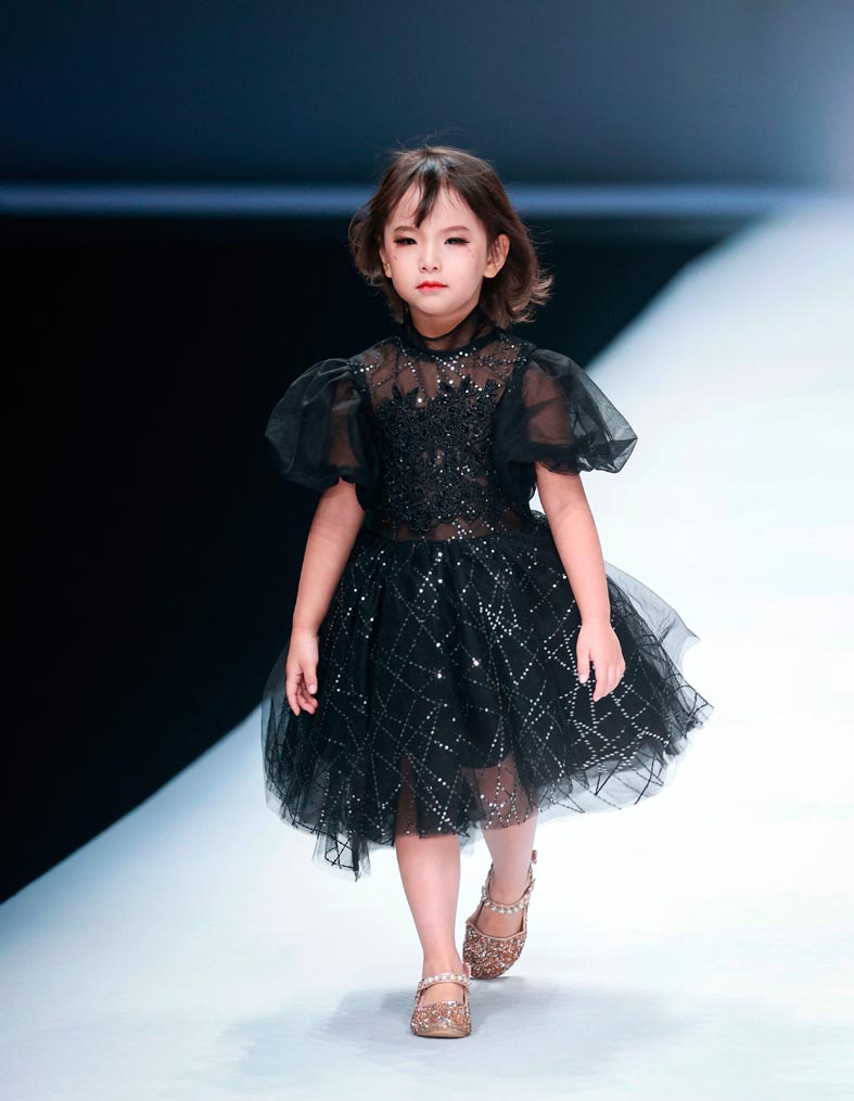 عارضة تقدم أزياء للأطفال من ابتكار مجموعة KUNJIE خلال أسبوع الموضة الصيني في بكين. ا ف ب