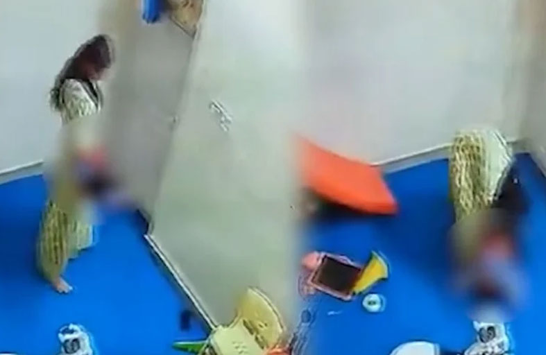 أوقفت الشرطة الهندية في مدينة نويدا عاملة في حضانة، بعد انتشار مقطع فيديو كشف اعتدائها على رضيعة، 15 شهراً، بمضرب بلاستيكي، وتصفعها، وتطرحها أرضاً، وتعضها من فخذيها، دون تدخل إدارة المركز. ففي 4 أغسطس -آب الجاري، أوصل والدان طفلتهما إلى حضانة داخل المجمع السكني الذي يعيشان فيه، حيث اعتادت البقاء هناك لساعتين يومياً. وعند عودة الأم لاصطحاب ابنتها، لاحظت علامات غريبة على فخذيها، فسارعت إلى الطبيب الذي أكد أن العلامات، هي آثار عضّ بشرية. وعادت الأم إلى الحضانة مطالبة بمراجعة كاميرات المراقبة، وهناك شاهدت ما وصفته بـ"الكابوس"، حيث وجدت العاملة، التي لم يمض على عملها سوى عشرة أيام، تحمل الطفلة وتغلق باب غرفة، ثم تلتقط مضرباً بلاستيكياً من الأرض بقدمها وتضرب رأس الصغيرة مرات، قبل أن تدفعها نحو الحائط، وتلقي بها على الأرض، وتصفعها بعنف، دون أن تحرك صاحبة الحضانة ساكناً.