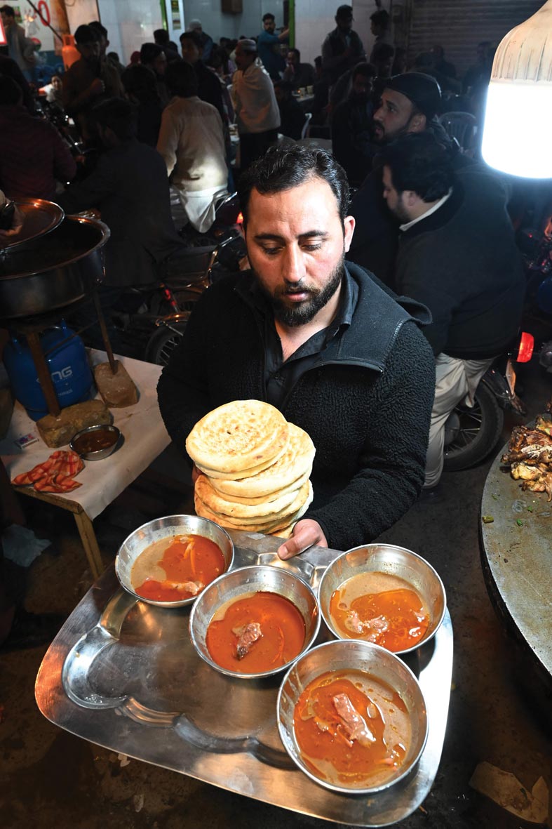 عامل باكستاني يقدم الطعام لوجبة السحور قبل بداية صيام رمضان في شارع كارتاربورا للطعام في روالبندي. (ا ف ب)