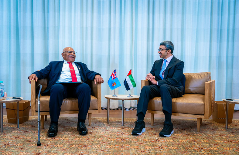عبدالله بن زايد ورئيس وزراء فيجي يبحثان في نيويورك العلاقات الثنائية وجهود مكافحة تغير المناخ