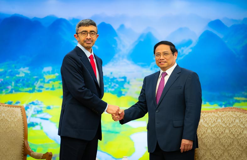 بحث سمو الشيخ عبدالله بن زايد آل نهيان وزير الخارجية ومعالي فام مينه تشينه رئيس وزراء جمهورية فيتنام الاشتراكية ، علاقات التعاون الثنائي بين البلدين وفرص تعزيزها في عدة مجالات ، ومنها الاقتصادية والتجارية والاستثمارية.
