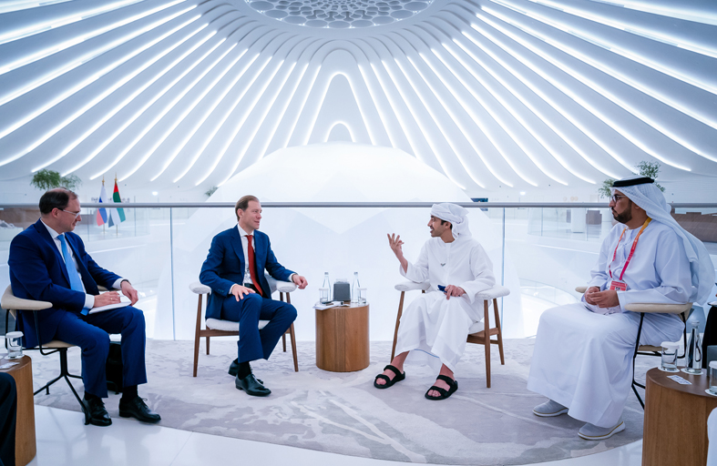 عبدالله بن زايد يستقبل وزير التجارة والصناعة الروسي في إكسبو 2020