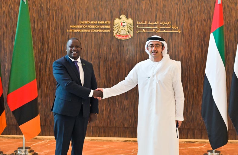 عبدالله بن زايد يستقبل وزير الخارجية والتعاون الدولي في زامبيا