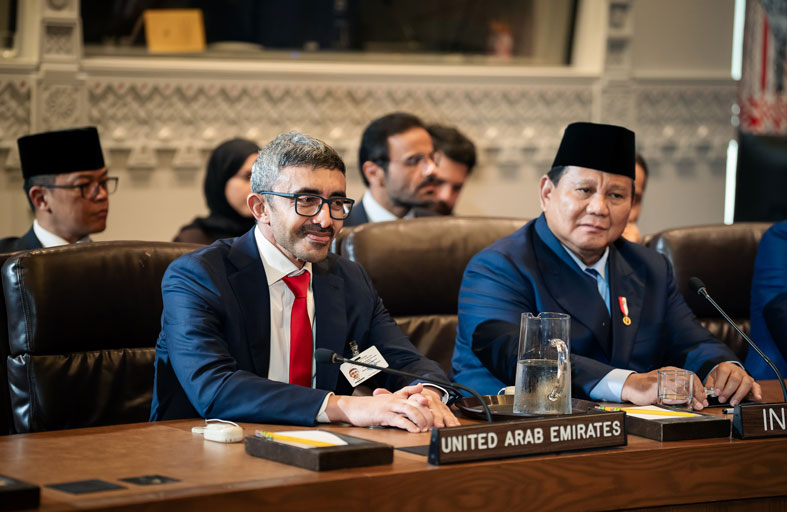 كما حضر الاجتماع إلى جانب سمو الشيخ عبدالله بن زايد آل نهيان، معالي يوسف مانع العتيبة سفير دولة الإمارات لدى الولايات المتحدة الأمريكية.