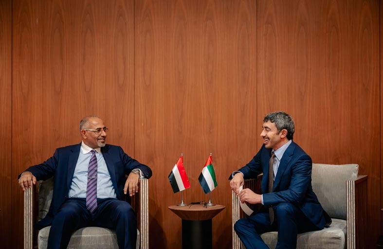 عبدالله بن زايد يلتقي نائب رئيس مجلس القيادة الرئاسي اليمني في نيويورك