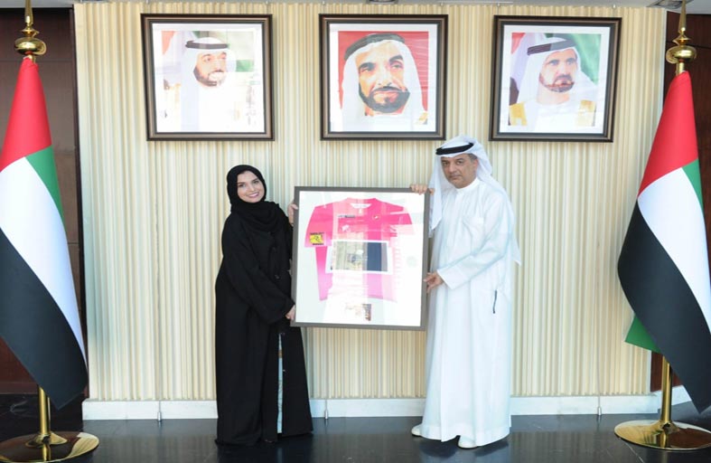 جاء ذلك خلال استقباله في مقر الهيئة للسيدة نورة الجسمي رئيسة اللجنة النسائية والتسويق والتطوير باتحاد الدراجات مديرة طواف دبي النسائي الدولي التي قدمت بدورها قميص الطواف لسعادته تعبيرا عن تقدير اللجنة المنظمة العليا باتحاد الدراجات برئاسة أسامة أحمد الشعفار وتثمينا لدور الهيئة العامة للرياضة التي تقوم بدور هام وفعال بدعم مسيرة الاتحادات الرياضية ومن بينها اتحاد الدراجات وقدمت الجسمي له كل الشكر على تعاونه الإيجابي وإرشاداته التي أسهمت في نجاح الطواف وخروجه بصورة تليق برياضة الإمارات التي أشاد بها الجميع..