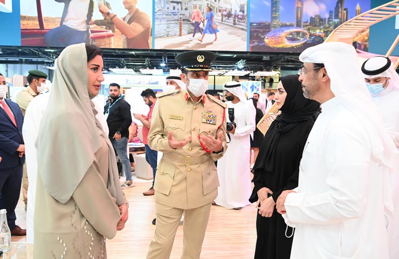 عبد الله المري يتفقد منصة شرطة دبي في معرض سوق السفر العربي 2022