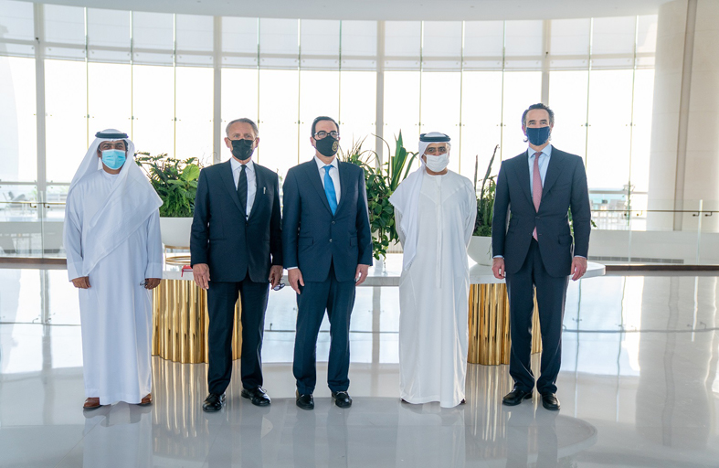 التقى معالي عبيد حميد الطاير وزير الدولة للشؤون المالية، يوم أمس مع معالي ستيفن منوشن وزير الخزانة الأمريكي في أبوظبي، وبحضور سعادة يونس حاجي الخوري وكيل وزارة المالية وممثلين عن مصرف الإمارات العربية المتحدة المركزي؛ حيث تم مناقشة العلاقات الاستراتيجية المشتركة وسبل تطوير وتقوية مجالات التعاون المالي والاقتصادي بين دولة الإمارات العربية المتحدة والولايات المتحدة الامريكية.