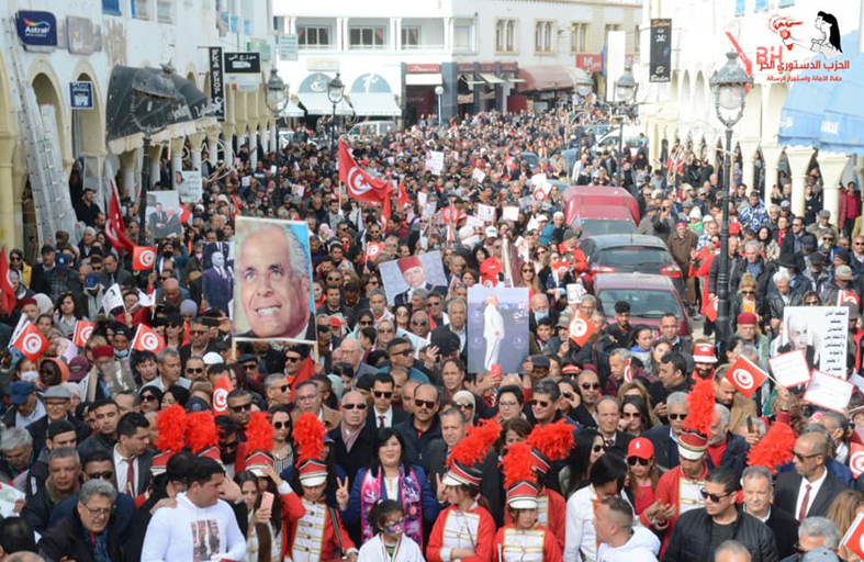أعلنت رئيسة الحزب الدستوري الحر عبير موسي في تدوينة لها على صفحتها الرسمية على فيسبوك عن اعتزامها تنظيم مسيرة الزحف على قصر قرطاج يوم 15 مايو القادم.