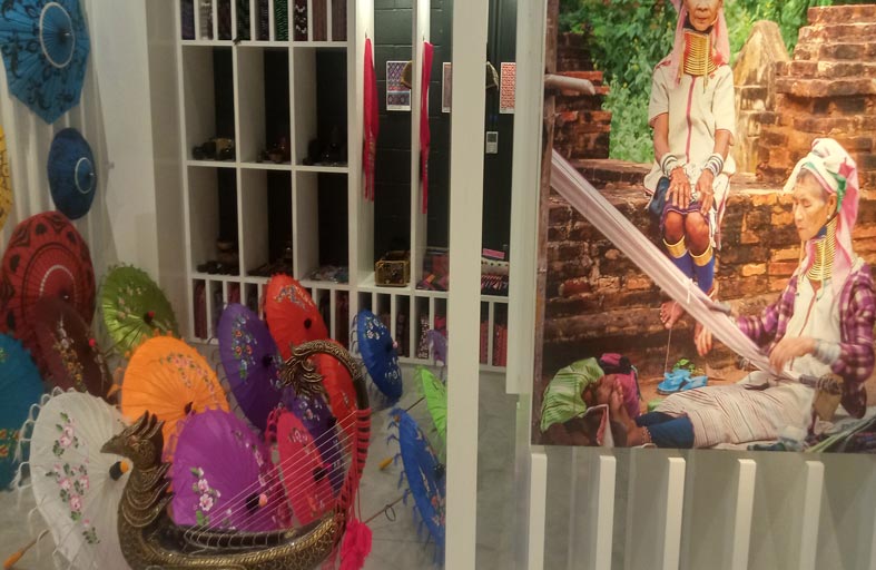 وينتقل الزائر من مرحلة الثقافة والتاريخ إلى جدريات ومرحلة من التراث في ميانمار، حيث جاءت صورا تجسد النينجا وارتدائهم الملابس التقليدية مع وجود نساء وهن يطحن الأرز بالات بدائية من التراث، بالإضافة إلى نساء ينسجن الأقمشة ويصنعن المشغولات اليدوية المعروفة لديهم، فضلا عن وجود حلقات متتالية ترتديها النساء في الرقبة لتجعل أعناقهن طويلة.