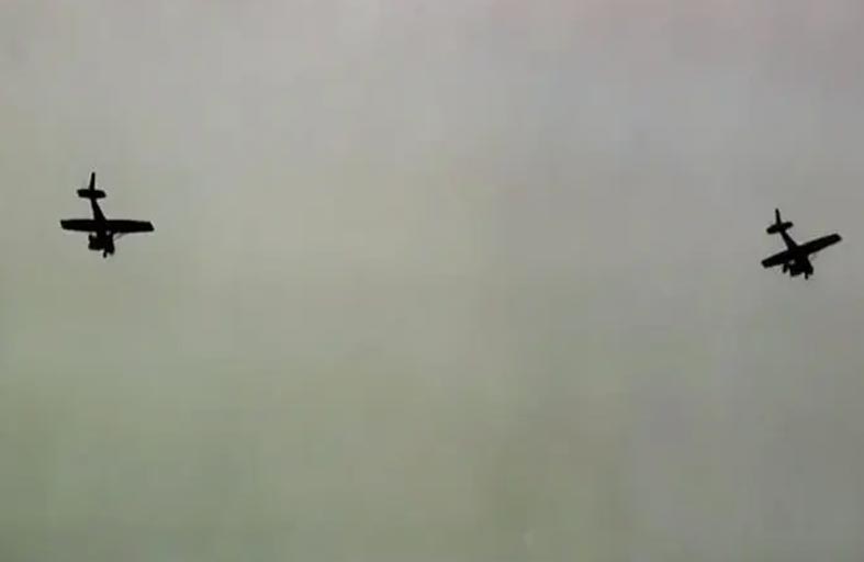 لكن لم يصب المغامران، وهما من عائلة واحدة، بأي أذى من جراء الاستعراض غير الناجح، لأنهما كانا خارج الطائرتين أثناء التحطم.
