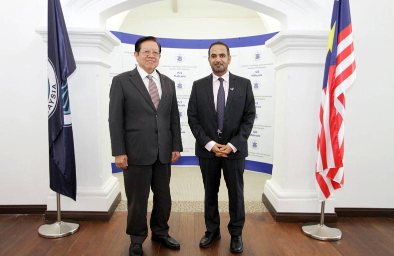 حضر الإطلاق .. سعادة خالد غانم الغيث سفير الدولة لدى ماليزيا، وسعادة البروفيسور محمد فايز عبدالله رئيس مجلس إدارة معهد الدراسات الاستراتيجية والدولية الماليزي.