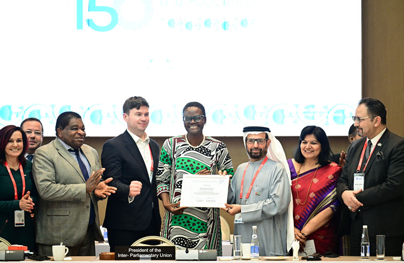 من جانب آخر، كرمت معالي توليا اكسون رئيسة الاتحاد البرلماني الدولي، معالي الدكتور علي النعيمي، عن فترة تمثيله الفاعلة للمجموعة الجيوسياسة العربية في اللجنة التنفيذية، التي استمرت مدة أربع سنوات.