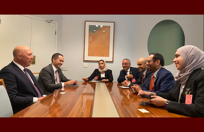 التقى معالي الدكتور علي راشد النعيمي رئيس لجنة شؤون الدفاع والداخلية والخارجية في المجلس الوطني الاتحادي- الذي يقوم بأول زيارة برلمانية رسمية إلى استراليا - معالي بيتر داتون رئيس الكتلة النيابية لحزب الأحرار في البرلمان الأسترالي في العاصمة كانبرا.
