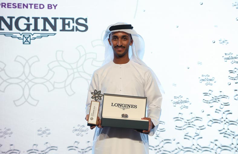 وتسلم الفارس المرزوقي الذي يعد أول إماراتي وعربي يحقق هذه الجائزة، الكأس وهدية لونجين من باتريك عون، مدير علامة لونجين التجارية في الشرق الأوسط وجنوب شرق آسيا.