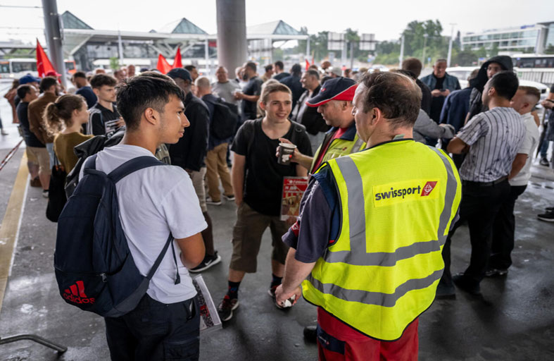 وتقرر تمديد الإضراب إلى السبت بعد اجتماع بين إدارة المطار ووفد نقابي. واستقبلت سلطات كانتون جنيف النقابيين بعد ظهر الجمعة.