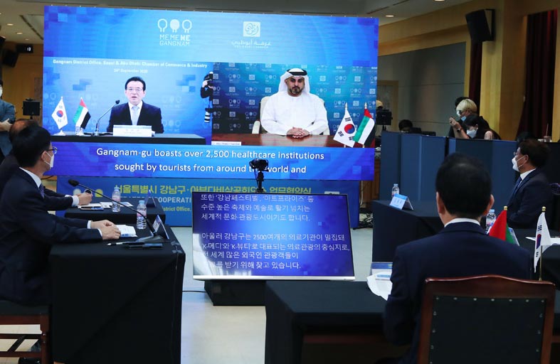 وقال مدير عام غرفة أبوظبي نحن على ثقة تامة أننا وبتوجيهات ودعم لامحدود من قيادتنا الرشيدة، وتكامل العمل المشترك مع شركائنا سوف نتغلب على هذه التحديات ونحولها إلى فرص من أجل مستقبل أفضل. وأوضح المهيري أن العلاقات الاقتصادية بين دولة الإمارات وكوريا الجنوبية وطيدة، تشهد لها أرقام وإحصائيات التبادل التجاري والاستثمارات المختلفة، منوها أن غرفة أبوظبي أفتتحت أول مكتب تمثيل دولي لها في سيول عام 2015، مشيرا إلى أن هذه الاتفاقية رقم 9 ، التي توقعها غرفة أبوظبي مع مؤسسات وهيئات رائدة في كوريا الجنوبية، ومنوها بأن منطقة كانغنام تشتهر بتقدم قطاع الرعاية الصحية، وبموجب هذه الاتفاقية ستنظم غرفة أبوظبي وبالتعاون مع هيئة الصحة بأبوظبي “أسبوع أبوظبي-كوريا للرعاية الصحية” المزمع إقامته بالتعاون مع رابطة التجارة الدولية الكورية كيتا ومكتب منطقة كانغنام خلال شهر أكتوبر المقبل. حيث سيكون ملتقى هاما للقطاع الصحي والسياحة العلاجية، مؤكدا أن هذه المبادرة ستقدم نظرة عامة على الخطة الرئيسية للرعاية الصحية في أبوظبي، كما ستعرض فرص الاستثمار المتاحة والتعاون بين الشركات العاملة في قطاع الرعاية الصحية في المنطقتين، كما سيكون الحدث منصة تفاعلية للشركات والمؤسسات المعنية بهذا القطاع للتعرف على مجالات واسعة وجديدة في قطاع الرعاية الصحية تتطلبها المرحلة المقبلة من أجل اقتصاد مستدام. من جانبه أكد السيد سون-كيون جانج محافظ منطقة “كانغنام” أنه في وقت يشهد فيه العالم العديد من القيود والصعوبات بسبب جائحة كوفيد 19، نتعاون نحن وغرفة أبوظبي من خلال هذه الاتفاقية الاستراتيجية التي ستكون بمثابة زخم لتوسيع التبادلات الثنائية في مختلف المجالات. لاسيما وأن مقاطعة كانجنام- جو هي موطن لبعض أشهر شركات الترفيه على مستوى العالم، كما تمتلك أكثر من 2500 مؤسسة رعاية صحية يبحث عنها السائحون من جميع أنحاء العالم ، وبالتالي فهي معروفة باسم مركز السياحة العلاجية.
