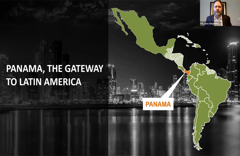 وخلال الندوة، دعا معالي خوسيه أليخاندرو روخاس، الشركات في دولة الإمارات للاستفادة من مكانة بنما كبوابة عالمية لتوسيع أعمالهم في أمريكا اللاتينية والاستفادة من فرص نمو جديدة في المنطقة. كما لفت نظر المشاركين إلى أنه يمكن للشركات في دولة الإمارات الاستفادة من موقع بنما في مجال الاتصالات حيث تتوسط سبعة من ألياف الاتصال الضوئية البحرية الرئيسية في المنطقة.