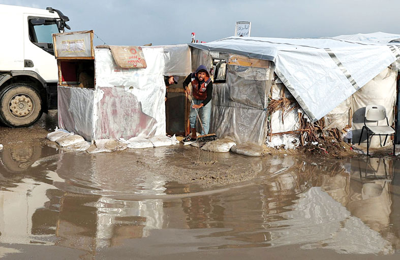 وأفاد المكتب الإعلامي الحكومي في غزة، بأن النازحين أمضوا ليلة عصيبة داخل خيامهم التي غرقت بمياه الأمطار وعصفت بها الرياح خلال المنخفض الجوي الذي بدأ مساء الأحد.وأوضح أن 2 مليون نازح يعيشون ظروفا إنسانية كارثية نتيجة للحرب الإسرائيلية على قطاع غزة المستمرة منذ 451 يوما، والتي دمرت مئات آلاف المنازل بشكل كامل، ما دفع النازحين إلى اللجوء إلى العيش في خيام تفتقر إلى أدنى مقومات الحياة، لافتا إلى أن 110 آلاف خيمة من أصل 135 ألف خيمة، أصبحت خارج الخدمة وغير صالحة للاستخدام.