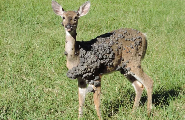 شهدت عدة ولايات أمريكية خلال الأسابيع الماضية انتشار صور مروّعة لغزلان تحمل أوراماً لحمية وفقاعات جلدية ضخمة على وجوهها وأجسادها، ما أثار مخاوف واسعة من احتمال تفشّي مرض جديد يهدد الحياة البرية في البلاد. وتداول مستخدمو مواقع التواصل الاجتماعي عشرات الصور التي توثق هذه الحالات، خصوصاً في ولايات نيويورك وبنسلفانيا وويسكونسن، حيث بدت الغزلان بجلود متورمة وكتل لحمية معلّقة بأجسادها.