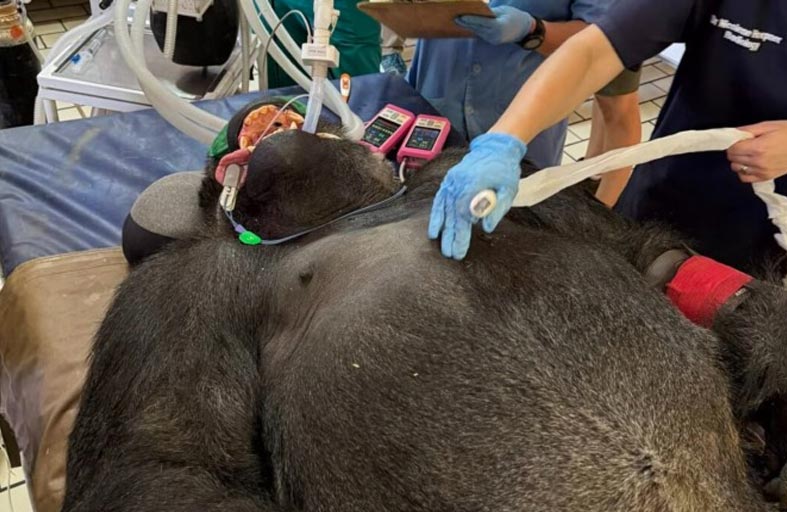 خاض 6 أطباء بيطريون "مهمة مستحيلة" مع غوريلا ضخمة في عيادة للأسنان، حيث دخلوا في سباق مع الوقت لإنهاء معالجة أسنانها قبل استيقاظها من المخدر مبكراً، وإحداثها فوضى مدمّرة في العيادة. وحسب موقع "ميرور"، كانت الغوريلا بينغا البالغة 23 عاماً تشعر بحالة سيئة بسبب رفضها تناول المضادات الحيوية عن طريق الفم لعلاج خرّاج أسنان، بعدما تم اكتشافه في فكها السفلي الشهر الماضي خلال فحوصات روتينية للحيوانات تجريها الحديقة سنوياً. وبما أن التدخل الجراحي كان الخيار الوحيد لإنهاء ألمها، تعاونت حديقة الحيوانات الوطنية في بريتوريا مع جامعة بريتوريا من أجل نقلها إلى عيادة طب بيطري للأسنان. وشكّل فريق من ستة خبراء للحفاظ على سلامتها وإبقائها فاقدة للوعي خلال عملية معقدة لأسنانها استغرقت ساعتين، وشاركت الحديقة لقطات من العملية عبر موقعها الإلكتروني "بريتوريا زو". انتهت العملية بسلام، ثم عادت إلى الحديقة خالية من الألم، على أمل أن تتزاوج قريباً، وفقاً لما ذكرته البروفيسورة كاتيا كويبل التي كانت جزءاً من فريق الأطباء البيطريين.