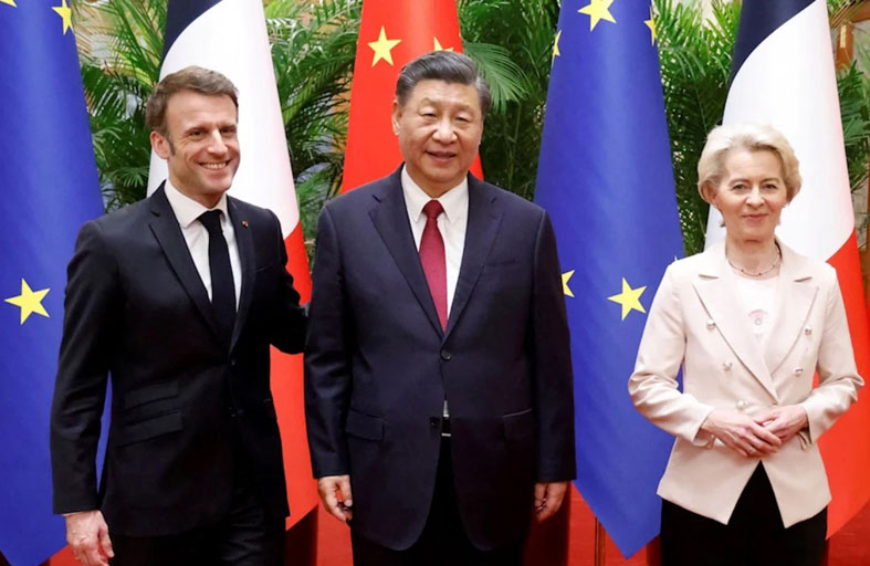 سافر ماكرون إلى بكين مع فون دير لاين لتقديم نهج أوروبي موحد تجاه الصين. لكنه أحضر أيضاً كتيبة من قادة الأعمال، وفتح باريس أمام اتهامات بقيادة سياسة خارجية مركنتيلية وترك أوروبا تبدو منقسمة. قبل ذلك بأيام قليلة، ألقت فون دير لاين خطاباً قالت فيه إن على أوروبا “التخلص من المخاطر” بدلاً من فصل علاقاتها عن الصين. وقالت إن الانفصال الكامل أمر غير مرغوب فيه، لذلك يجب على الغرب بدلاً من ذلك تقليل المخاطر في القطاعات الاستراتيجية مثل أشباه الموصلات والبطاريات والمعادن الهامة. كما تحدث وزراء مالية مجموعة السبع الأسبوع الماضي عن الحاجة إلى “تنوع” سلسلة التوريد مع خطط لـ “تمكين” الاقتصادات الناشئة.