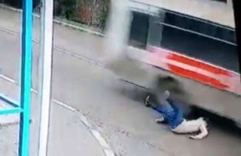 وكان المذهل في الأمر أن عجلات الحافلة كانت بعيدة سنتميرات قليلة جدا عن رأس الفتاة المستلقية على الأرض، ولولا ذلك لتهشمت جمجمتها.