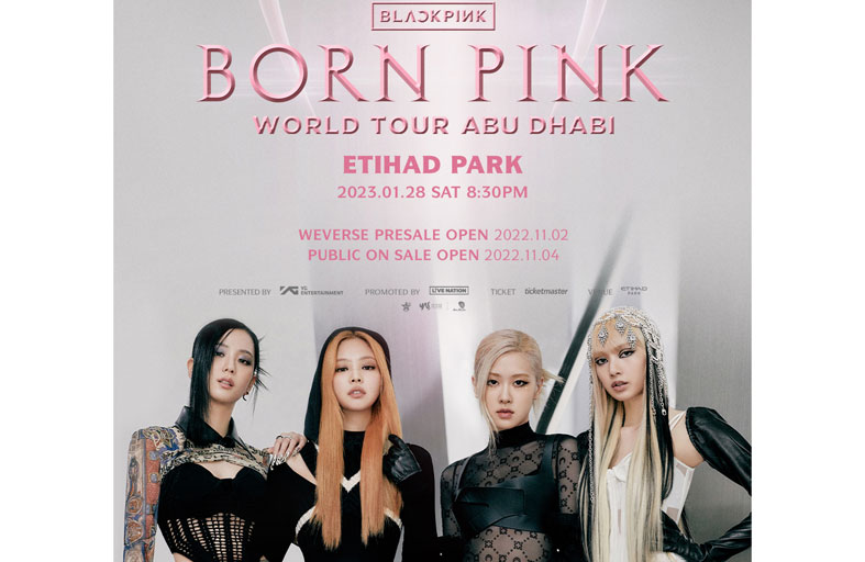 أعلنت بلاك بينك، فرقة موسيقى البوب الكورية النسائية، عن إقامة أول حفل موسيقي لها في الإمارات يوم 28 يناير المقبل على مسرح حديقة الاتحاد في جزيرة ياس بأبوظبي في إطار جولتها العالمية. وتقدم الفرقة المكونة من أربع مغنيات أبرز أغانيها، مثل آيس كريم وهاو يو فيل وددو دو ددو دو، لتتيح لعشاق الفرقة في العاصمة الإماراتية الاستمتاع بحفل استثنائي على جميع المقاييس، لا سيما مع إنارة المسرح بالكامل طوال فترة الحفل.