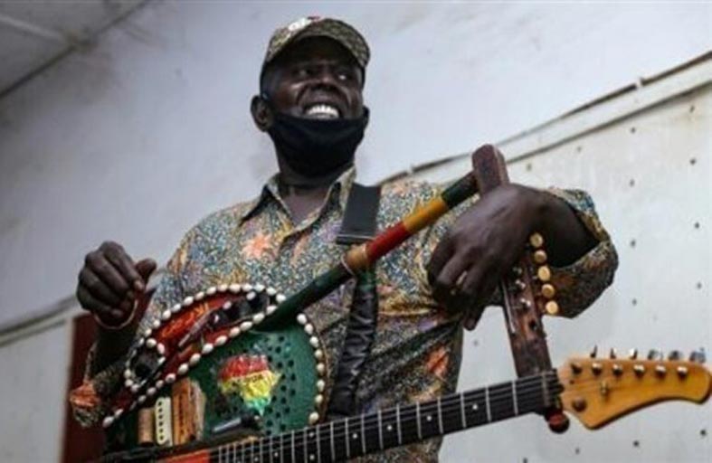 يضبط نور الدين جابر آلته الفريدة المكونة من نصف غيتار ونصف دف، ليعزف مع فرقته ألحان وإيقاعات شعوب شرق السودان المهمشة التي يريد أن ينقل صوتها للعالم من خلال موسيقاه.