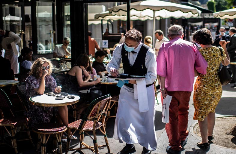 وبعد ستة أشهر من حياة تحكمها قيود، بات بامكان الفرنسيين اعتباراً من الأربعاء الذهاب إلى المطاعم والمقاهي والحانات من جديد لكن فقط في باحاتها الخارجية، مع فرض استقبال 50% من قدرتها الاستيعابية وجلوس ستة أشخاص فقط على الطاولة نفسها. وفرض على المطاعم والمقاهي الانتظار حتى التاسع من حزيران/يونيو لاستقبال الزبائن في قاعاتها الداخلية.