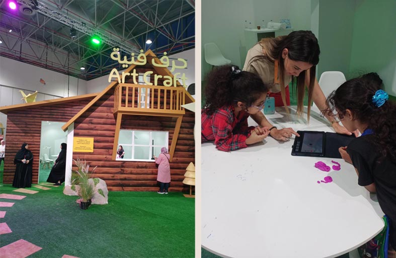أن هذا الركن يستضيف من 10 إلى 15 طفلا وطفلة في اليوم، تقوم بتدريبهم مدربات محترفات على تشكيل الصلصال لمجسمات فنية تتماشى مع إدراك الأطفال في هذه السن المبكرة، بالإضافة لتصوير مراحل تنفيذ المجسم وتشيله بكاميرا الحاسوب، والهدف من هذه التجربة هو تعليم الأطفال النحت والتصوير مواكبة لاسم ركن حرف فنية.