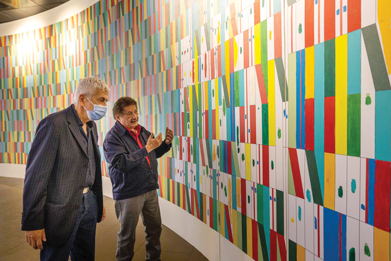 تجذب كتل جريئة من الألوان والأنماط الهندسية الزوار إلى جناح فنزويلا في إكسبو 2020 دبي، حيث يشاهدون الأعمال الفنية للفنان خوفينال رافيلو المعروضة بالجناح بشكل بارز وتلقي الضوء على أعماله الراقية التي تلفت الأنظار.