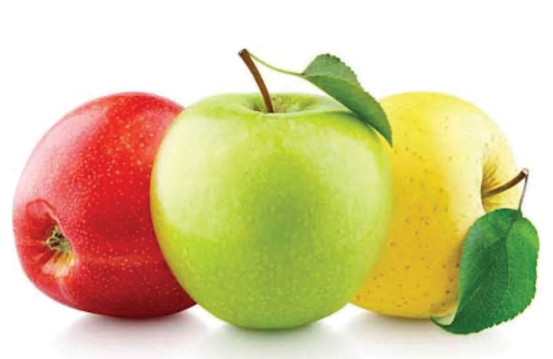 ووفقا لها يحتوي التفاح الأخضر على نسبة سكر منخفضة ولكنه يحتوي على نسبة عالية من المواد المفيدة والأحماض مقارنة بالأنواع الأخرى. أما التفاح الأصفر فيحتوي على نسبة أعلى من البكتين.