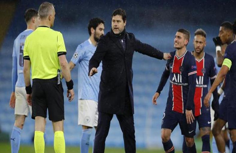 أقدم الحكم الهولندي بيورن كايبرز الذي أدار مواجهة مانشستر سيتي الإنكليزي وباريس سان جرمان في اياب نصف نهائي دوري أبطال أوروبا لكرة القدم على إهانة لاعبين من فريق العاصمة الفرنسية، وفق ما أكد لاعبا الوسط الايطالي ماركو فيراتي والاسباني أندر هيريرا.