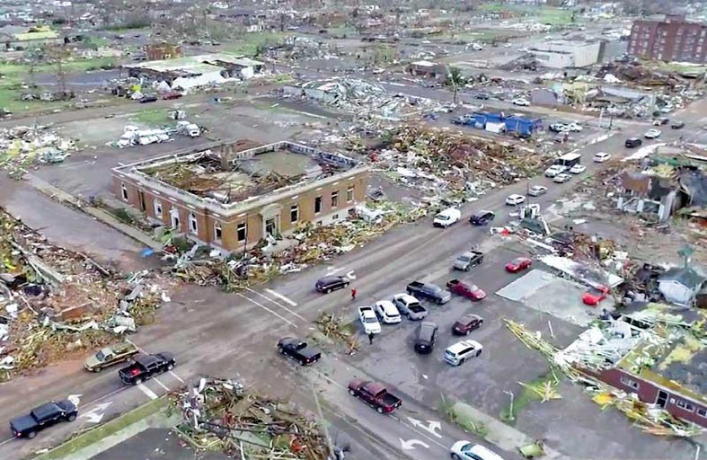 وقضى نحو 100 شخص في 6 ولايات في وسط أميركا وجنوبها، وهي ميزوري، وأركنساس، وكنتاكي، وتينيسي، وميسيسيبي، وإلينوي، فضلا عن مئات الجرحى وآلاف المشردين وتدمير مئات المنازل والمباني، وخسائر مادية جسيمة بمليارات الدولارات، طالت المرافق العامة والخاصة وشبكات الكهرباء والمواصلات والبنى التحتية، بسبب أعاصير وعواصف وصفها الرئيس بايدن أنها “مأساة تفوق التصور».