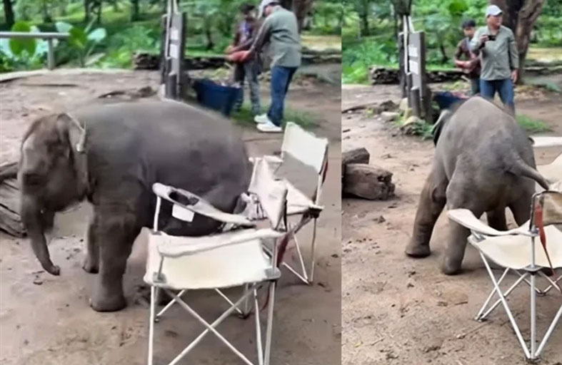 خطف فيل صغير الأنظار حول العالم، بعد تداول مقطع فيديو طريف وثّق محاولاته للجلوس على مقعد قابل للطي، في ملجأ لرعاية الحيوانات بالهند، متحدياً قوانين الطبيعة وثقل وزنه الكبير. وأظهر المقطع الفيل الصغير بخرطومه القصير الذي يتأرجح في الهواء، بينما يحاول بتردّد أن يوازن جسمه الضخم فوق الكرسي الذي بدا وكأنه يستعد للسقوط في أي لحظة، فيما تكرّرت المحاولة أكثر من مرة حتى بعد انهيار الكرسي أرضاً، ليحوّل المشهد البريء إلى حكاية ضاحكة يتداولها الملايين.