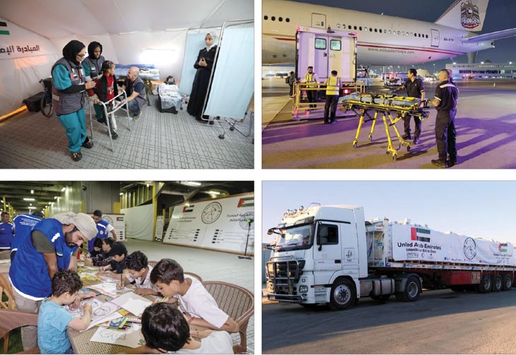 ولأنها دولة الإنسانية شعارها الإنسان أولاً، سارعت دولة الإمارات العربية المتحدة إلى مساندة القطاع الصحي والمستشفيات المتضررة في قطاع غزة، من خلال مختلف الخدمات الطبية والعلاج الذي تقدمه للجرحى والمصابين سواء في المستشفى الميداني الإماراتي بمدينة رفح الذي أنشأته في ديسمبر من العام الماضي أو المستشفى العائم في مدينة العريش، كالمساعدات الطبية والأدوية والأجهزة الحديثة والإسعافات التي ساندت فيها المستشفيات ومؤسسات الرعاية الصحية، حيث قدمت عملية الفارس الشهم، 400 طن من المساعدات والمستلزمات الطبية لعدد من المستشفيات والمنظمات الدولية علاوة على تركيب الأطراف الاصطناعية.
