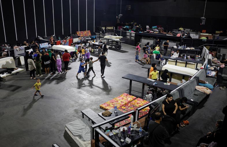 عوضا عن زبائنه السابقين المرفهين، يستضيف ملهى “ذا سكين”، أو “المكان الذي يجب عدم تفويت رؤيته في بيروت”، وفق ما يقول أحد المرشدين السياحيين، عائلات نازحة شرّدها القصف المتواصل منذ حوالي عشرة أيام على الضاحية الجنوبية لبيروت وجنوب لبنان وشرقه التي تعتبر معاقل لحزب الله.