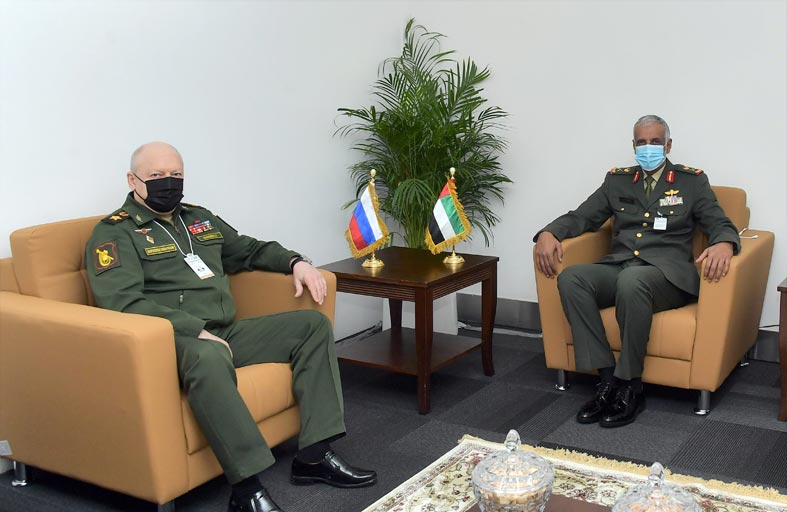 استقبل سعادة اللواء الركن صالح محمد صالح العامري قائد القوات البرية بمكتبه في معرض آيدكس 2021 ، الفريق أول أوليغ سالوكوف قائد القوات البرية الروسية. وجرى خلال اللقاء استعراض علاقات التعاون بين البلدين الصديقين خاصة ذات الصلة بالشؤون العسكرية والدفاعية وسبل تعزيزها وتنميتها بما يخدم المصلحة المشتركة.